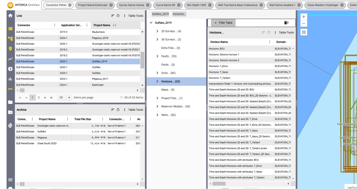 Built with open APIs and connectors to major geoscience and data-management applications, Interica OneView connects seamlessly with industry standards such as OSDU® and DELFI, supporting both on-premise and cloud-native deployments for maximum flexibility.